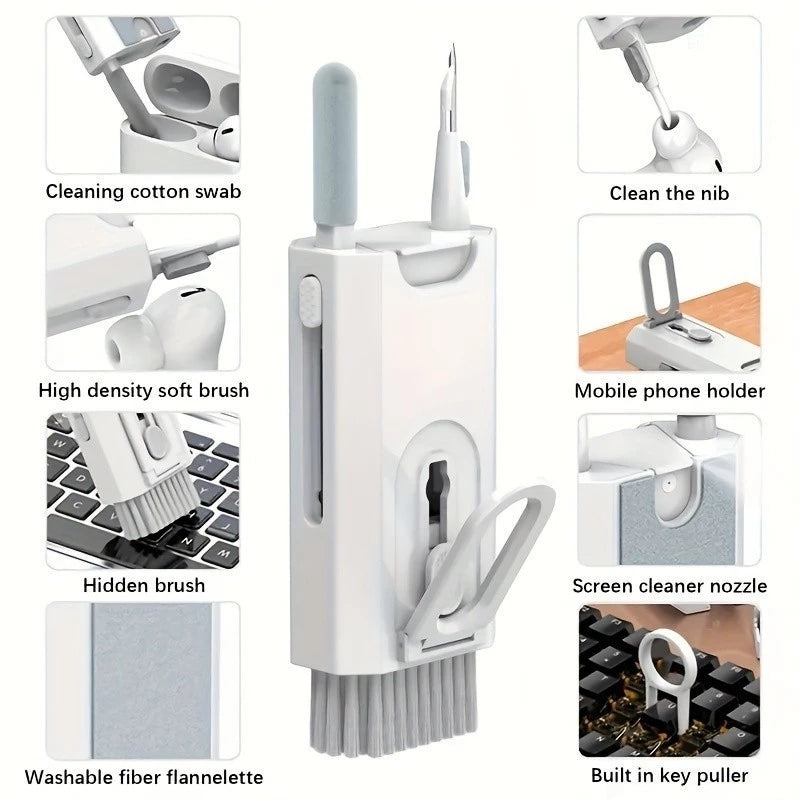 Escova de Limpeza Multifuncional 8 em 1 – Portátil para Teclados, Fones e Computadores